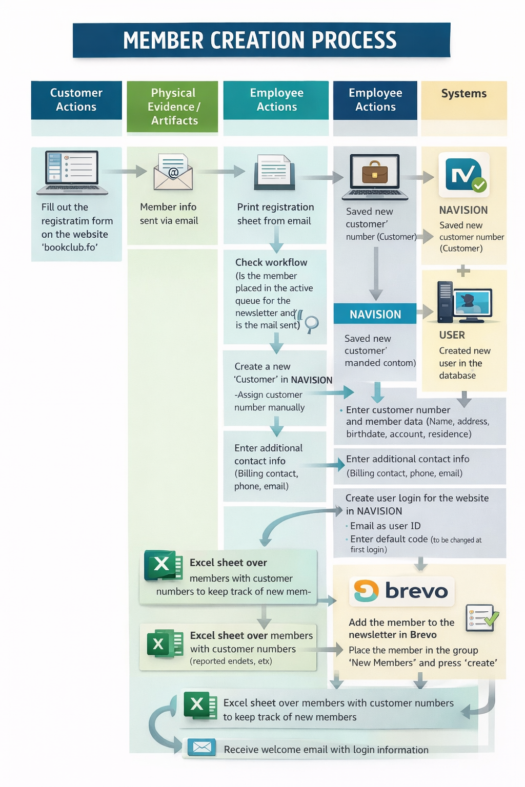 Membership administration happens across Outlook, Excel, Navision 2018 and Brevo. None of these systems are fully integrated, meaning staff manually move data between them and rely on tacit knowledge to keep everything consistent.